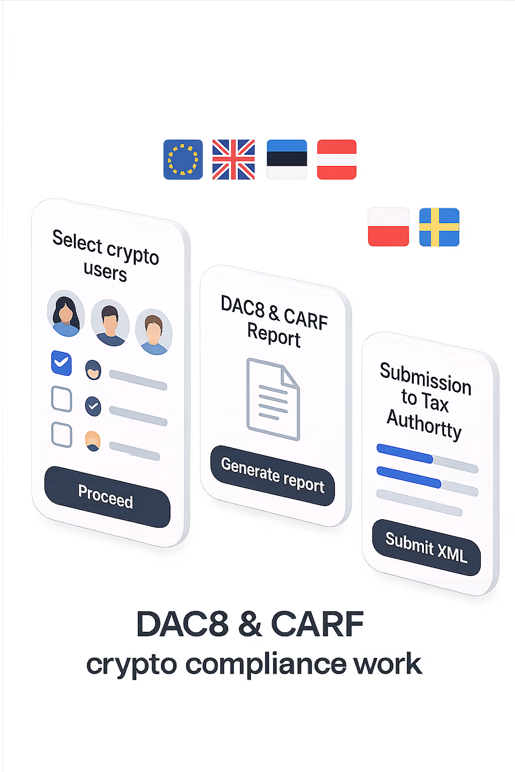From onboarding crypto-asset users to submitting transaction reports to tax authorities, we automate DAC8 and CARF compliance so you're always audit-ready and in control